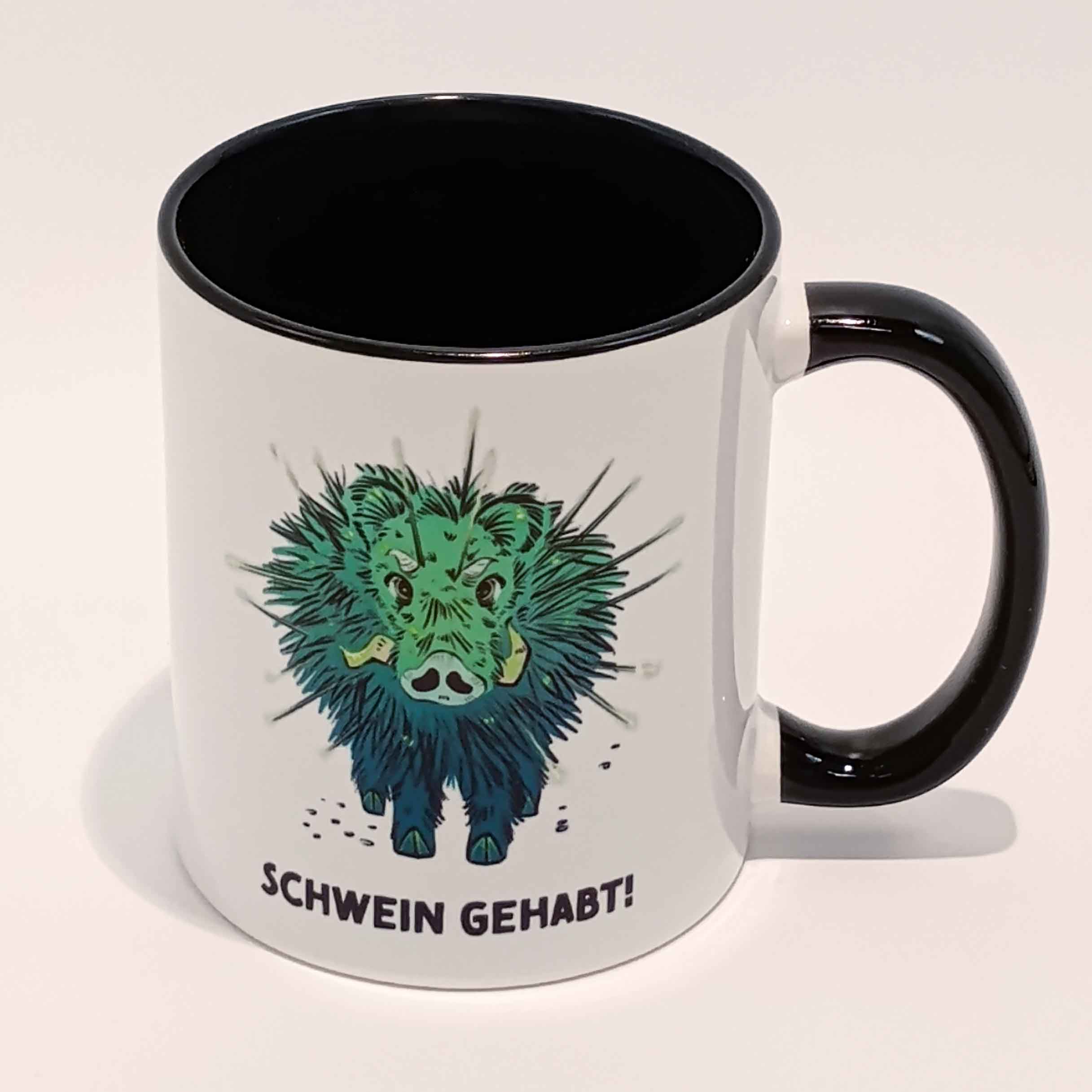 Eine hochwertige, in Deutschland bedruckte Tasse mit dem niedlichen Kaktuswildschwein aus dem Kindercomic Abenteuer im Schattenwald. „Schwein gehabt!“ ist immer gut – besonders wenn es sich um ein Kaktuswildschwein handelt!